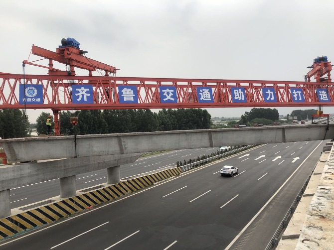 > 山東濟南跨高速40米53度斜角箱梁架設JQ200-45架橋機